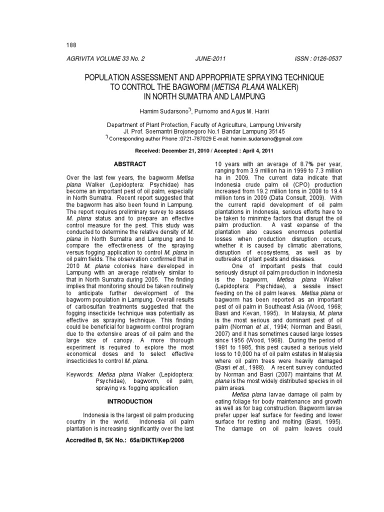 (PDF) Evaluation of Bagworm, Metisa plana (Lepidoptera ... from www.researchgate.net Three species of bagworms, mahasena corbetti tams, metisa plana wlk. Bagworm larvae prefer upper leaf surface for feeding and lower surface for resting and molting (basri, 1995). The product has been used for laboratory bioassay towards metisa plana. 2.2.1 metisa p z m walker 2.2.2 integrated. Major disease of oil palm caused by ganoderma and its threat to felda is also discussed. Metisa plana larvae damage oil palm by eating foliage for body maintenance and growth as well as for bag construction. The efficacy of the bt cells cultivated in different modes of bioreactor operation was carried out against. The bagworm, metisa plana walker (lepidoptera: